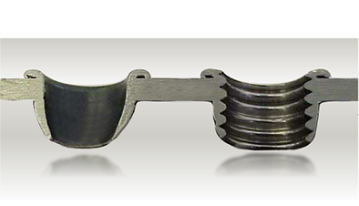 Le processus de travail à froid et sans coupe a un effet de compression extrême sur le matériau, en particulier à la base et au sommet de filet, et ne casse pas la fibre de la matière