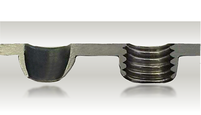 Le taraudage par déformation est particulièrement adapté pour la réalisation d’assemblages filetés obtenus après une opération de fluoperçage. Il permet de ne pas affaiblir la douille fluopercée et d’obtenir un filetage très résistant et qualitatif.